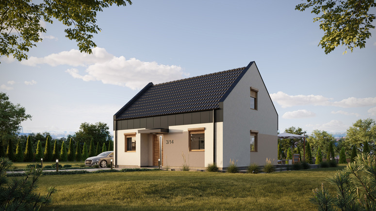 Dom ERDOL 2 PLUS ma powierzchnię po podłodze: 127 m² w rozkładzie: 68 m² na parterze oraz 59 m² na piętrze. Jest to początek nowej linii domów ERDOL HAUS, która charakteryzuje się nowoczesną bryłą oraz wstępnym wykończeniem budynku już w stanie surowym zamkniętym.