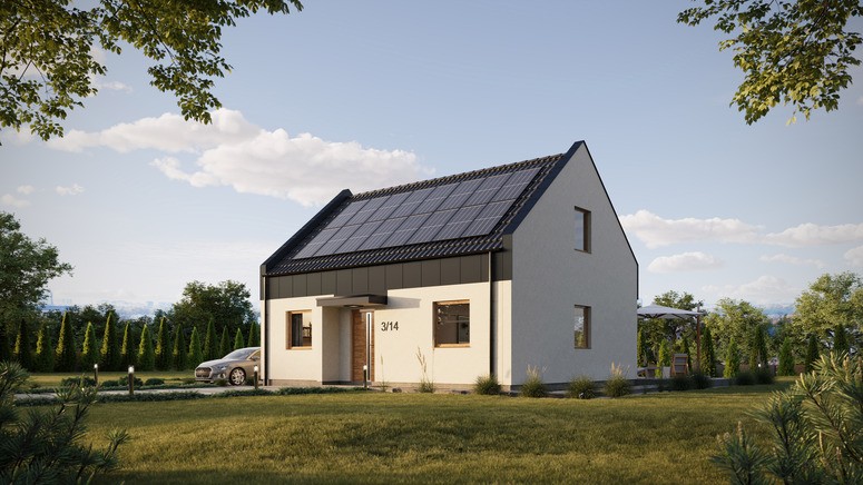 Każdy ERDOL PLUS w standardzie posiada prefabrykowany strop wypełniony wełną, prefabrykowane ściany na piętrze, ocieplony dach oraz zadaszenie wejścia.