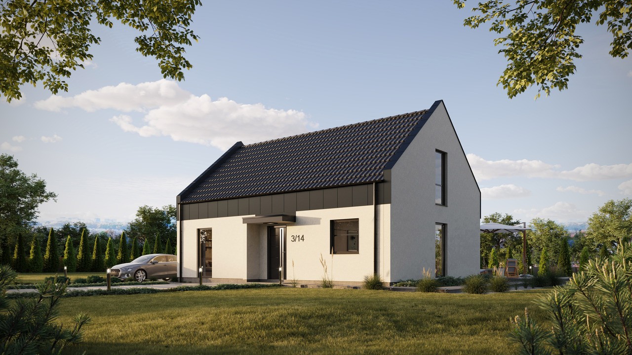 Jest to początek nowej linii domów ERDOL HAUS, która charakteryzuje się nowoczesną bryłą oraz wstępnym wykończeniem budynku już w stanie surowym zamkniętym.