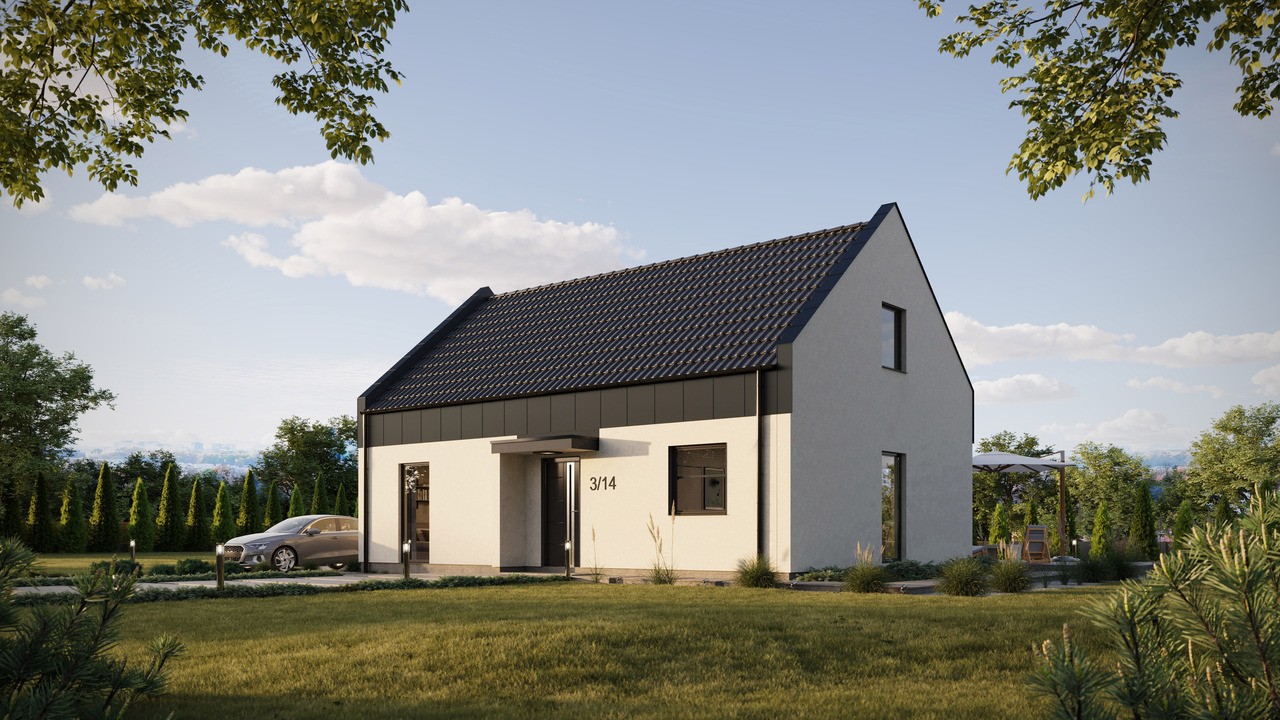 Jest to początek nowej linii domów ERDOL HAUS, która charakteryzuje się nowoczesną bryłą oraz wstępnym wykończeniem budynku już w stanie surowym zamkniętym.