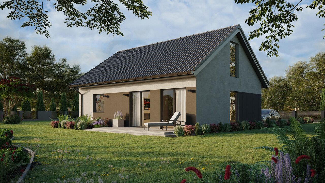 ERDOL 1 XL to powiększona wersja naszego bazowego projektu. Dom ten ma powierzchnię 74 m² (116 m² jeśli wybrana zostanie wersja z poddaszem użytkowym) i oferuje swoim mieszkańcom dobrze przemyślaną przestrzeń na kompaktowej powierzchni. Dzięki stosunkowo niewielkim rozmiarom ERDOL 1 XL jest domem tanim w utrzymaniu i wygodnym w codziennym funkcjonowaniu. Do jego stworzenia wykorzystaliśmy najwyższej jakości drewno KVH oraz energooszczędne rozwiązania i systemy, które sprawiają, że budynek jest przyjazny dla środowiska. Jeśli poszukujesz domu, który zapewni Ci komfort i pozwoli na oszczędności, ten model to doskonały wybór.