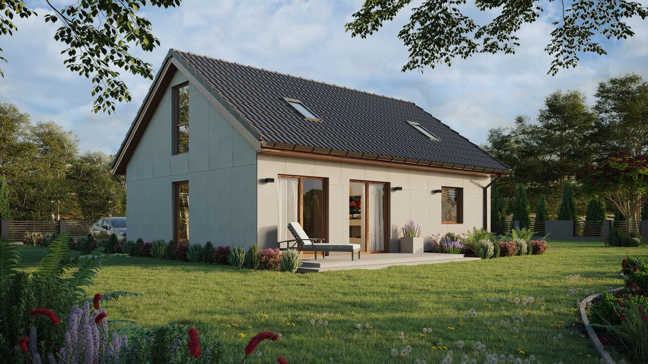 ERDOL 1 XL to powiększona wersja naszego bazowego projektu. Dom ten ma powierzchnię 74 m² (116 m² jeśli wybrana zostanie wersja z poddaszem użytkowym) i oferuje swoim mieszkańcom dobrze przemyślaną przestrzeń na kompaktowej powierzchni. Dzięki stosunkowo niewielkim rozmiarom ERDOL 1 XL jest domem tanim w utrzymaniu i wygodnym w codziennym funkcjonowaniu. Do jego stworzenia wykorzystaliśmy najwyższej jakości drewno KVH oraz energooszczędne rozwiązania i systemy, które sprawiają, że budynek jest przyjazny dla środowiska. Jeśli poszukujesz domu, który zapewni Ci komfort i pozwoli na oszczędności, ten model to doskonały wybór.