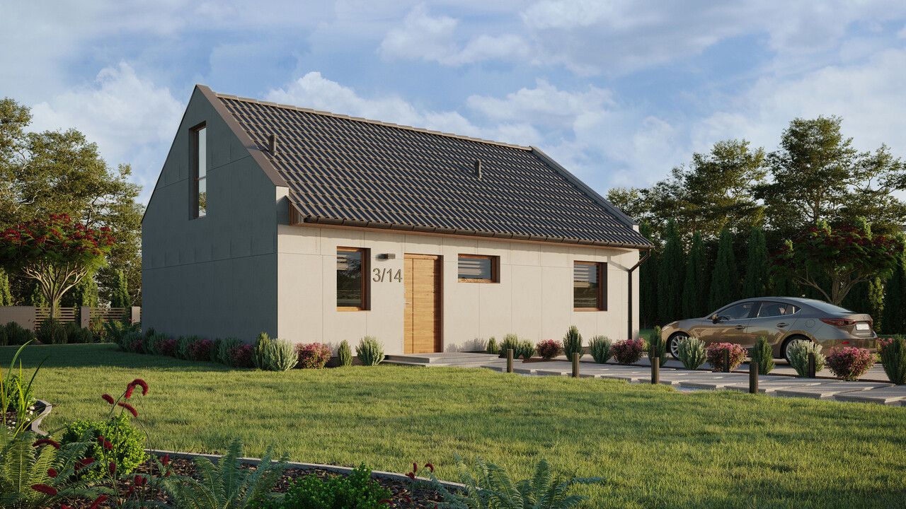 ERDOL 1 XL to powiększona wersja naszego bazowego projektu. Dom ten ma powierzchnię 74 m² (116 m² jeśli wybrana zostanie wersja z poddaszem użytkowym) i oferuje swoim mieszkańcom dobrze przemyślaną przestrzeń na kompaktowej powierzchni. Dzięki stosunkowo niewielkim rozmiarom ERDOL 1 XL jest domem tanim w utrzymaniu i wygodnym w codziennym funkcjonowaniu. Do jego stworzenia wykorzystaliśmy najwyższej jakości drewno KVH oraz energooszczędne rozwiązania i systemy, które sprawiają, że budynek jest przyjazny dla środowiska. Jeśli poszukujesz domu, który zapewni Ci komfort i pozwoli na oszczędności, ten model to doskonały wybór.