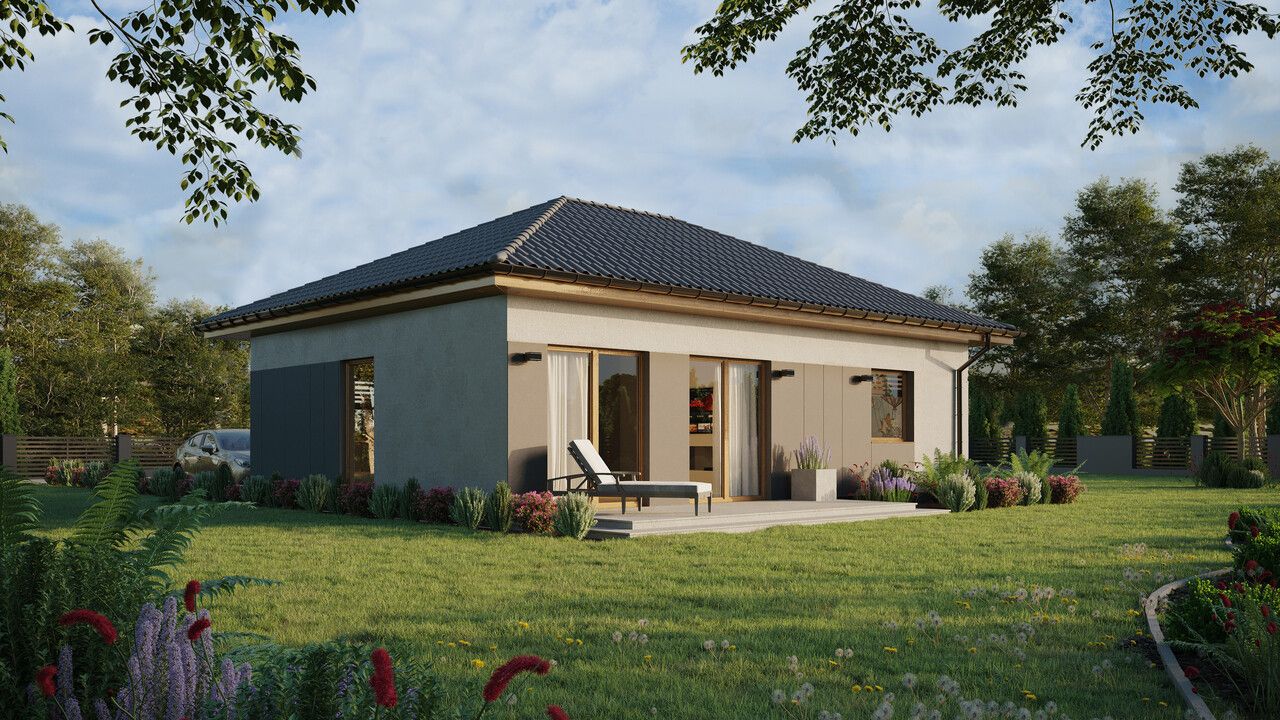 ERDOL 1 XL to powiększona wersja naszego bazowego projektu. Dom ten ma powierzchnię 74 m² (116 m² jeśli wybrana zostanie wersja z poddaszem użytkowym) i oferuje swoim mieszkańcom dobrze przemyślaną przestrzeń na kompaktowej powierzchni. Dzięki stosunkowo niewielkim rozmiarom ERDOL 1 XL jest domem tanim w utrzymaniu i wygodnym w codziennym funkcjonowaniu. Do jego stworzenia wykorzystaliśmy najwyższej jakości drewno KVH oraz energooszczędne rozwiązania i systemy, które sprawiają, że budynek jest przyjazny dla środowiska. Jeśli poszukujesz domu, który zapewni Ci komfort i pozwoli na oszczędności, ten model to doskonały wybór.