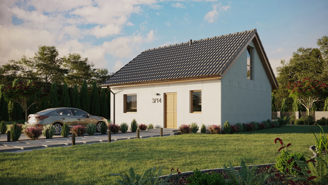 Dom ERDOL 1 o powierzchni 59 m² (90 m² w wersji z poddaszem użytkowym) zapewnia swoim mieszkańcom wygodną przestrzeń, w której wszystko, czego potrzebują, mają pod ręką. Niewielkie rozmiary sprawiają, że jest łatwy i tani w utrzymaniu, co w połączeniu z wykorzystanymi do budowy nowoczesnymi i ekologicznymi rozwiązaniami daje nam pewność, że jest to dom funkcjonujący w zgodzie z naturą. Jedną z jego zalet jest także niewielka powierzchnia zabudowy wynosząca zaledwie 70 m², dzięki czemu do jego budowy nie potrzeba pozwolenia. Konieczne jest jedynie zgłoszenie budowy.