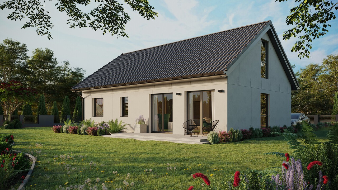 Dom ERDOL 2 XL ma powierzchnię 82 m² (130 m² w przypadku projektu z poddaszem użytkowym) i jest wydłużoną wersją domu ERDOL 2. Jest to doskonała propozycja dla wszystkich osób, które w swoim domu nie potrzebują dużej liczby pomieszczeń, jednak chcą skorzystać z dodatkowego metrażu, dzięki czemu zyskują więcej przestrzeni do wygodnego funkcjonowania. Zastosowane w tym projekcie nowoczesne technologie i ekologiczne rozwiązania sprawiają, że jest to dom energooszczędny, który funkcjonuje w harmonii z naturą. Do budowy wykorzystuje się drewno KVH stanowiące podstawę całej konstrukcji. Odpowiednio dobrane materiały izolacyjne sprawiają, że dom chroniony jest przed stratami ciepła.