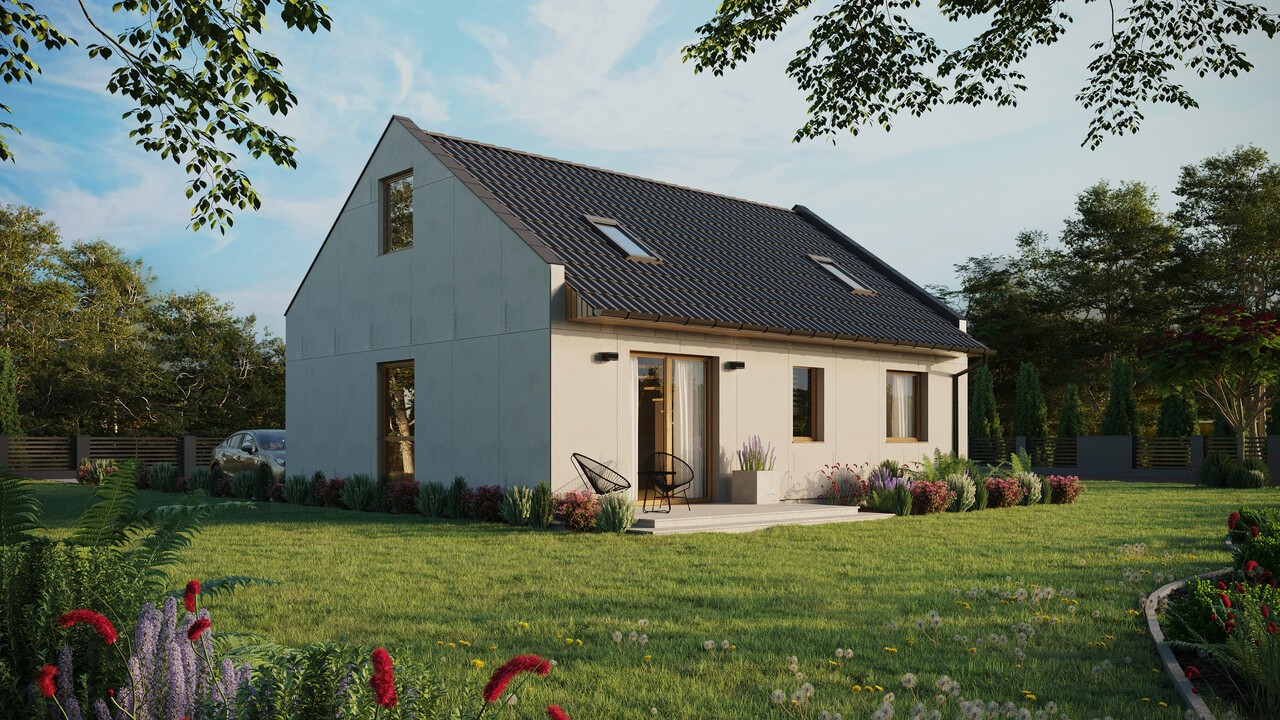 Dom ERDOL 2 o powierzchni 68 m² (107 m² w wersji z poddaszem użytkowym) został zaprojektowany tak, aby na kompaktowej przestrzeni zapewnić wygodę oraz wszystko to, co w codziennej przestrzeni jest najważniejsze. Zastosowane w nim nowoczesne technologie i ekologiczne rozwiązania, sprawiają, że jest to dom energooszczędny, który funkcjonuje w harmonii z naturą. Do budowy wykorzystuje się drewno KVH stanowiące podstawę całej konstrukcji. Odpowiednio dobrane materiały izolacyjne sprawiają, że dom chroniony jest przed stratami ciepła.