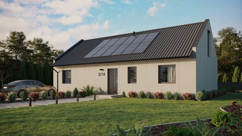 Projekt domu ERDOL 3 XL o powierzchni 97 m² (151 m² w wersji z poddaszem użytkowym) to projekt dla osób, które pragną mieć więcej wygodnej przestrzeni na co dzień. Dom w tej wersji to wydłużony ERDOL 3, dzięki czemu udało się zwiększyć powierzchnię salonu oraz wygospodarować osobną klatkę schodową (dla wersji z poddaszem użytkowym) lub dodatkowe pomieszczenie gospodarcze (dla wersji bez poddasza użytkowego). Jeśli zależy Ci na większym metrażu, ten projekt jest idealny dla Ciebie. Zastosowane w nim nowoczesne technologie i ekologiczne rozwiązania, sprawiają, że jest to dom energooszczędny, który funkcjonuje w harmonii z naturą. Do budowy wykorzystuje się drewno KVH stanowiące podstawę całej konstrukcji. Odpowiednio dobrane materiały izolacyjne sprawiają, że dom chroniony jest przed stratami ciepła.