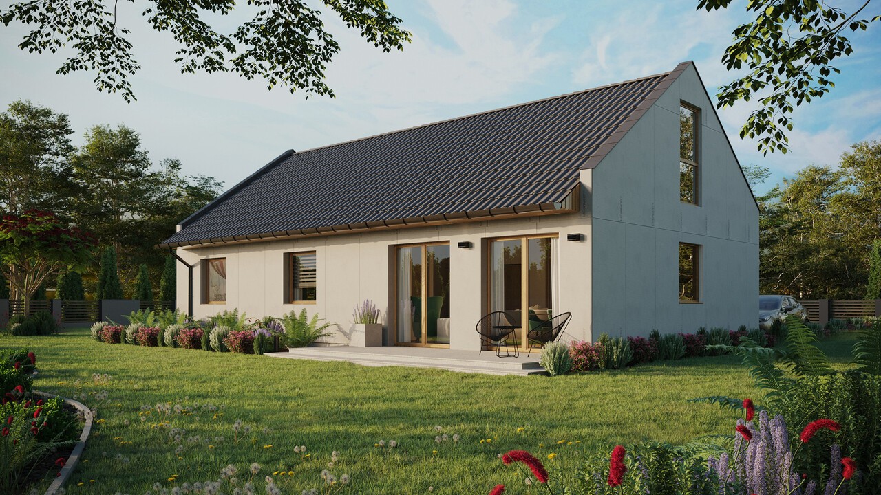 Projekt domu ERDOL 3 XL o powierzchni 97 m² (151 m² w wersji z poddaszem użytkowym) to projekt dla osób, które pragną mieć więcej wygodnej przestrzeni na co dzień. Dom w tej wersji to wydłużony ERDOL 3, dzięki czemu udało się zwiększyć powierzchnię salonu oraz wygospodarować osobną klatkę schodową (dla wersji z poddaszem użytkowym) lub dodatkowe pomieszczenie gospodarcze (dla wersji bez poddasza użytkowego). Jeśli zależy Ci na większym metrażu, ten projekt jest idealny dla Ciebie. Zastosowane w nim nowoczesne technologie i ekologiczne rozwiązania, sprawiają, że jest to dom energooszczędny, który funkcjonuje w harmonii z naturą. Do budowy wykorzystuje się drewno KVH stanowiące podstawę całej konstrukcji. Odpowiednio dobrane materiały izolacyjne sprawiają, że dom chroniony jest przed stratami ciepła.