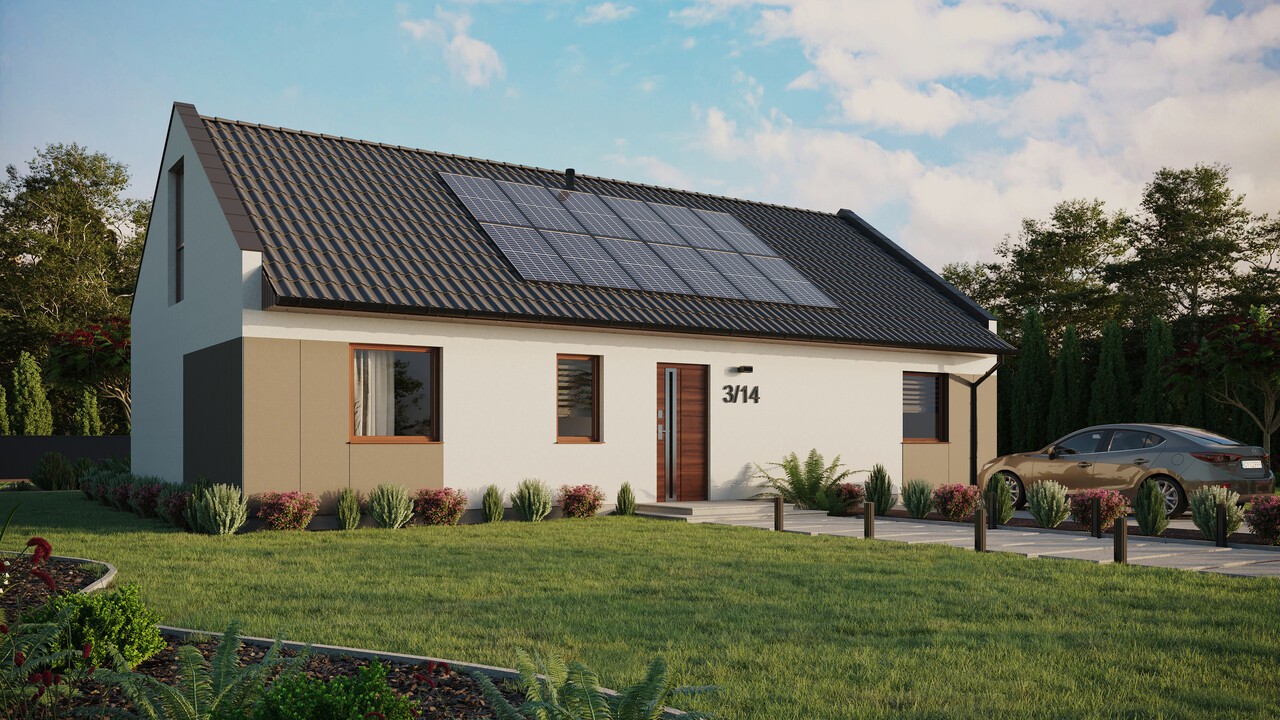 W skład wybranej konfiguracji wchodzi instalacja fotowoltaiczna 4,8 kWp (12 paneli) z inwerterem 3-fazowym 4 kW wraz z montażem. Rozmieszczenie paneli jest przykładowe, szczegóły instalacji do ustalenia z koordynatorem projektu.