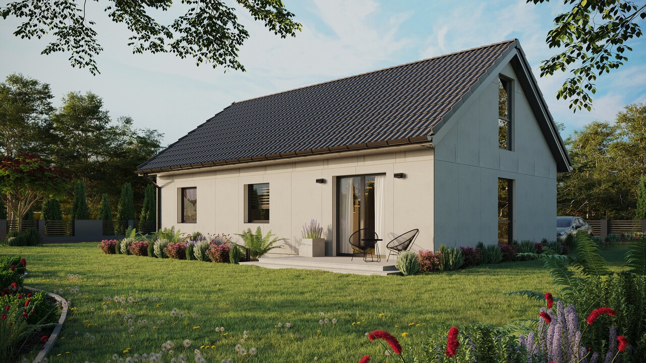 Projekt domu ERDOL 3 o powierzchni 82 m² (130 m² w wersji z poddaszem użytkowym) został stworzony tak, aby budynek zapewnił swoim mieszkańcom wygodne i przestronne wnętrza, w których znajdzie się miejsce na wszystko, czego potrzeba. Zastosowane w nim nowoczesne technologie i ekologiczne rozwiązania, sprawiają, że jest to dom energooszczędny, który funkcjonuje w harmonii z naturą. Do budowy wykorzystuje się drewno KVH stanowiące podstawę całej konstrukcji. Odpowiednio dobrane materiały izolacyjne sprawiają, że dom chroniony jest przed stratami ciepła.