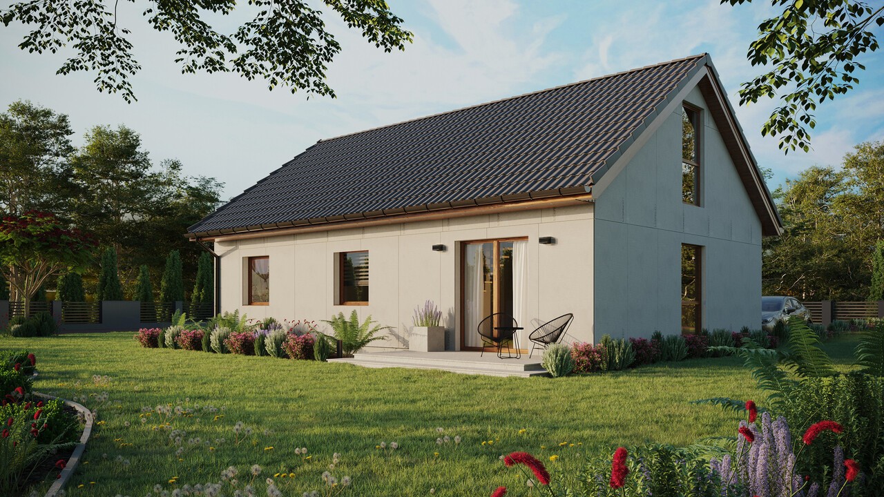 Projekt domu ERDOL 3 o powierzchni 82 m² (130 m² w wersji z poddaszem użytkowym) został stworzony tak, aby budynek zapewnił swoim mieszkańcom wygodne i przestronne wnętrza, w których znajdzie się miejsce na wszystko, czego potrzeba. Zastosowane w nim nowoczesne technologie i ekologiczne rozwiązania, sprawiają, że jest to dom energooszczędny, który funkcjonuje w harmonii z naturą. Do budowy wykorzystuje się drewno KVH stanowiące podstawę całej konstrukcji. Odpowiednio dobrane materiały izolacyjne sprawiają, że dom chroniony jest przed stratami ciepła.