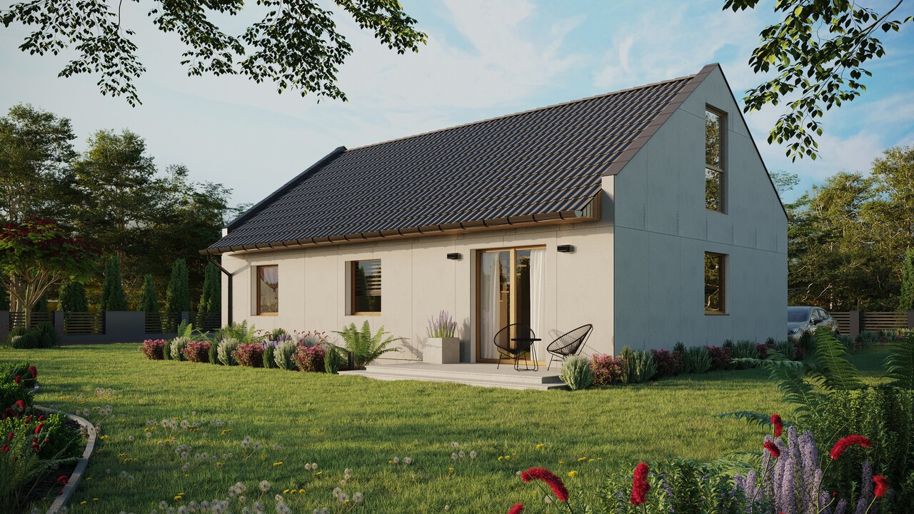 Projekt domu ERDOL 3 o powierzchni 82 m² (130 m² w wersji z poddaszem użytkowym) został stworzony tak, aby budynek zapewnił swoim mieszkańcom wygodne i przestronne wnętrza, w których znajdzie się miejsce na wszystko, czego potrzeba. Zastosowane w nim nowoczesne technologie i ekologiczne rozwiązania, sprawiają, że jest to dom energooszczędny, który funkcjonuje w harmonii z naturą. Do budowy wykorzystuje się drewno KVH stanowiące podstawę całej konstrukcji. Odpowiednio dobrane materiały izolacyjne sprawiają, że dom chroniony jest przed stratami ciepła.