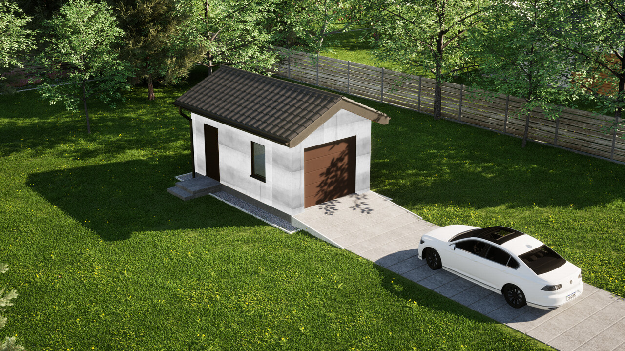 Garaż jednostanowiskowy ERDOL G1 o powierzchni 17,2 m² świetnie sprawdzi się nie tylko do garażowania samochodu, ale także do przechowywania wszystkich sprzętów, których nie potrzebujesz na co dzień w swoim domu, zyskując tym samym sporo dodatkowej przestrzeni.