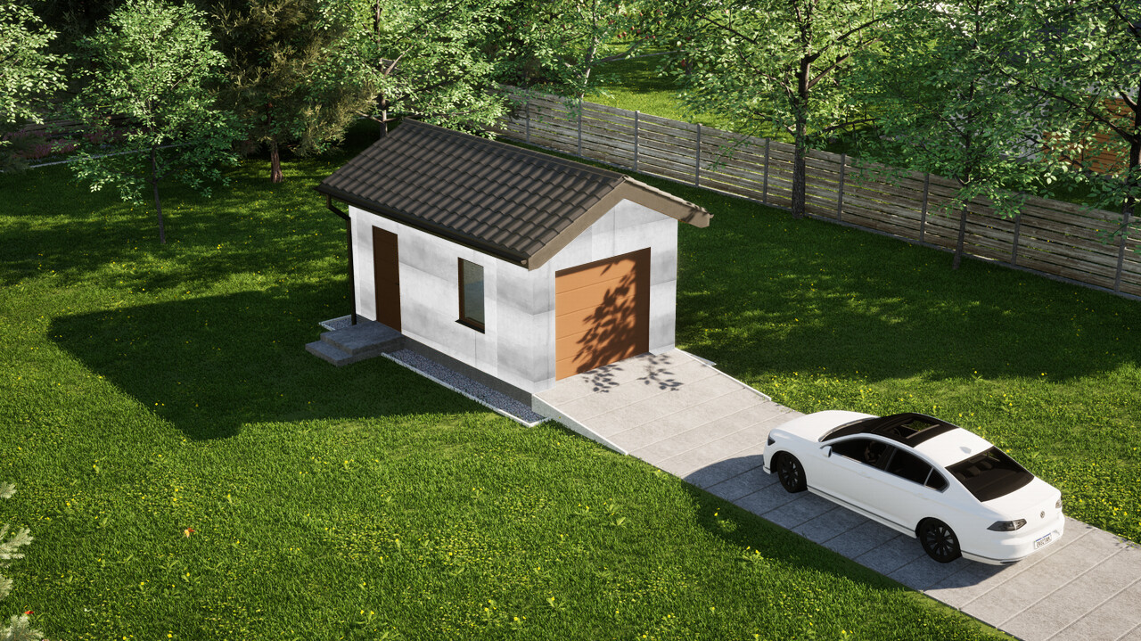 Garaż jednostanowiskowy ERDOL G1 o powierzchni 17,2 m² świetnie sprawdzi się nie tylko do garażowania samochodu, ale także do przechowywania wszystkich sprzętów, których nie potrzebujesz na co dzień w swoim domu, zyskując tym samym sporo dodatkowej przestrzeni.