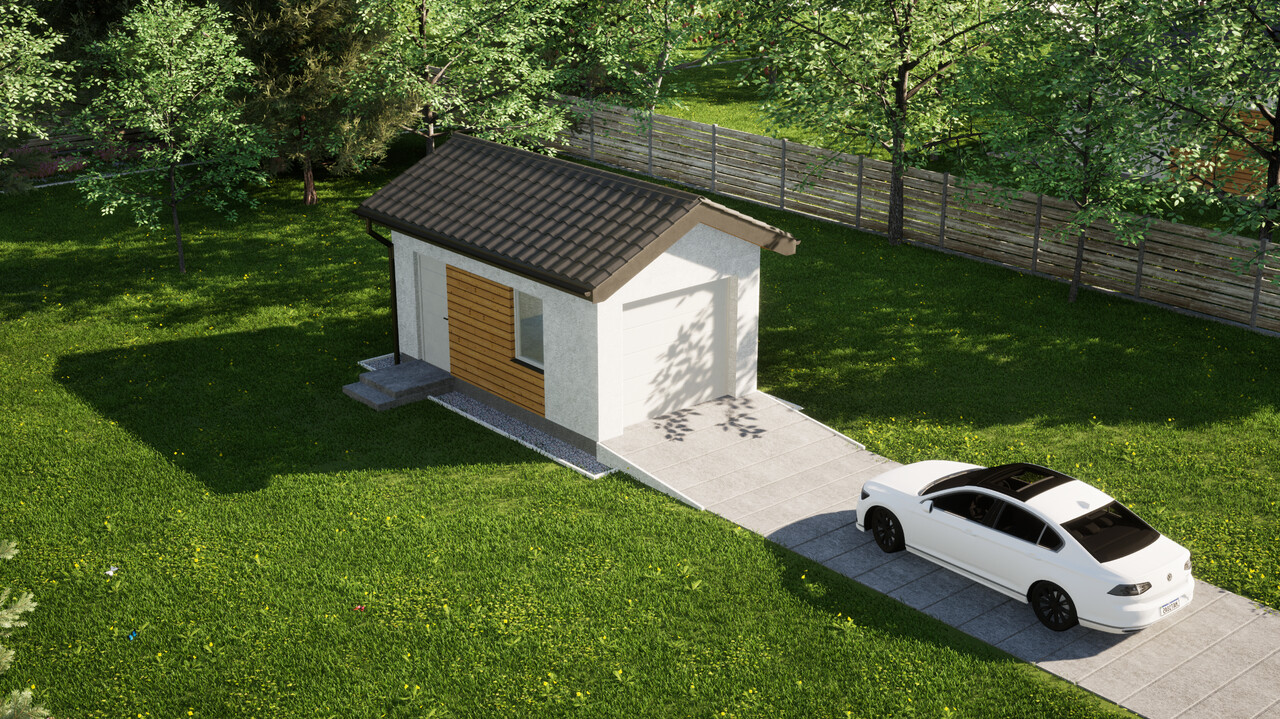 Garaż jednostanowiskowy ERDOL G1 o powierzchni 17,2 m² świetnie sprawdzi się nie tylko do garażowania samochodu, ale także do przechowywania wszystkich sprzętów, których nie potrzebujesz na co dzień w swoim domu, zyskując tym samym sporo dodatkowej przestrzeni.