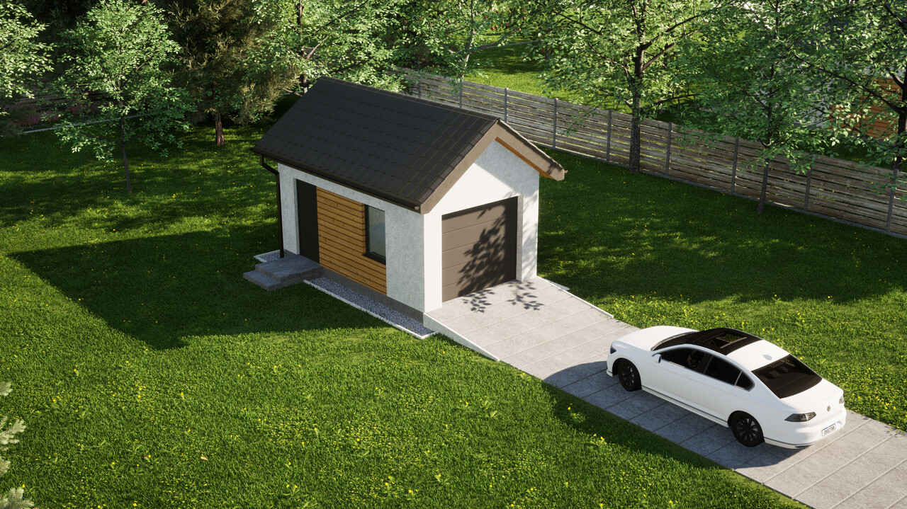 Garaż jednostanowiskowy ERDOL G1 o powierzchni 17,2 m² świetnie sprawdzi się nie tylko do garażowania samochodu, ale także do przechowywania wszystkich sprzętów, których nie potrzebujesz na co dzień w swoim domu, zyskując tym samym sporo dodatkowej przestrzeni.