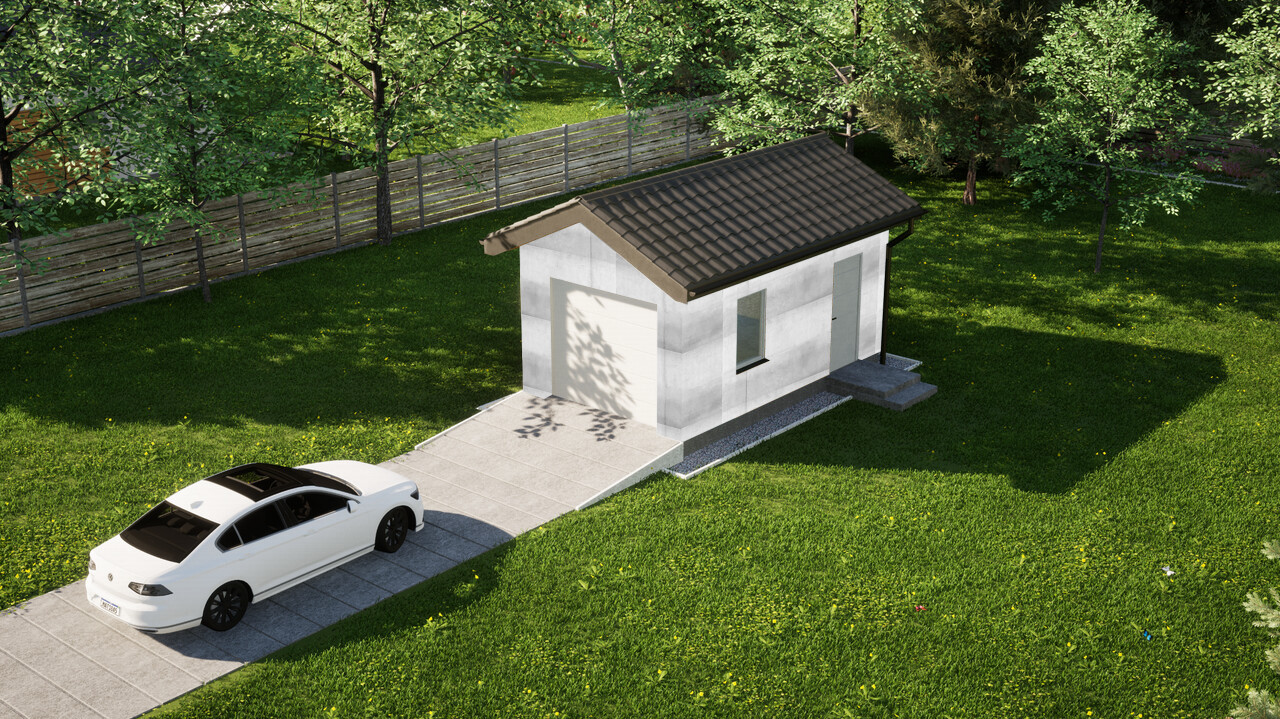 Garaż jednostanowiskowy ERDOL G1 o powierzchni 17,2 m² świetnie sprawdzi się nie tylko do garażowania samochodu, ale także do przechowywania wszystkich sprzętów, których nie potrzebujesz na co dzień w swoim domu, zyskując tym samym sporo dodatkowej przestrzeni.