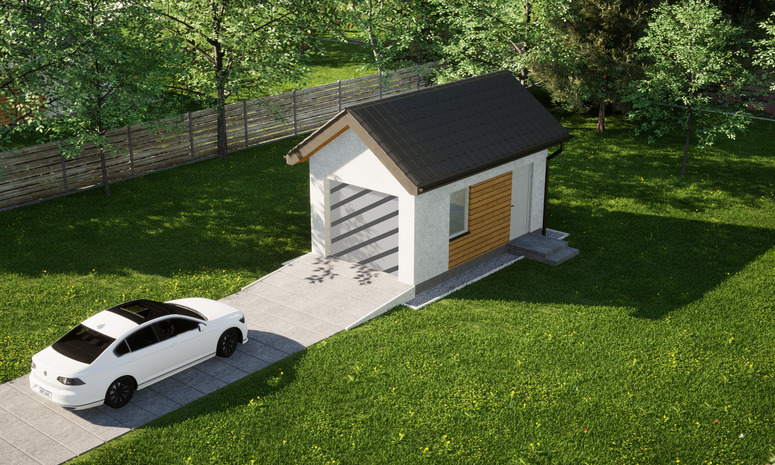 Garaż jednostanowiskowy ERDOL G1 o powierzchni 17,2 m² świetnie sprawdzi się nie tylko do garażowania samochodu, ale także do przechowywania wszystkich sprzętów, których nie potrzebujesz na co dzień w swoim domu, zyskując tym samym sporo dodatkowej przestrzeni.
