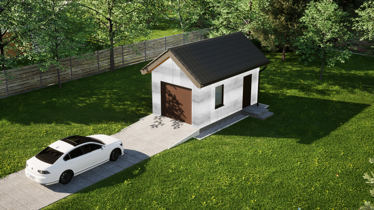 Garaż jednostanowiskowy ERDOL G1 o powierzchni 17,2 m² świetnie sprawdzi się nie tylko do garażowania samochodu, ale także do przechowywania wszystkich sprzętów, których nie potrzebujesz na co dzień w swoim domu, zyskując tym samym sporo dodatkowej przestrzeni.