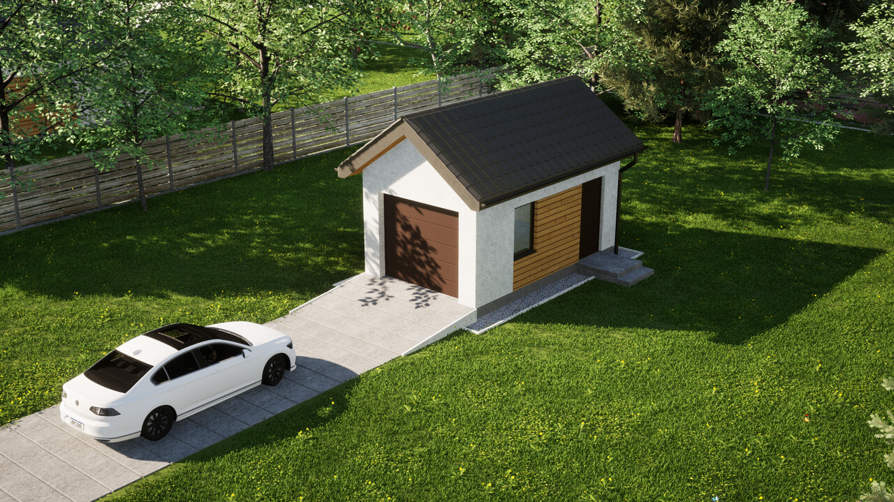 Garaż jednostanowiskowy ERDOL G1 o powierzchni 17,2 m² świetnie sprawdzi się nie tylko do garażowania samochodu, ale także do przechowywania wszystkich sprzętów, których nie potrzebujesz na co dzień w swoim domu, zyskując tym samym sporo dodatkowej przestrzeni.