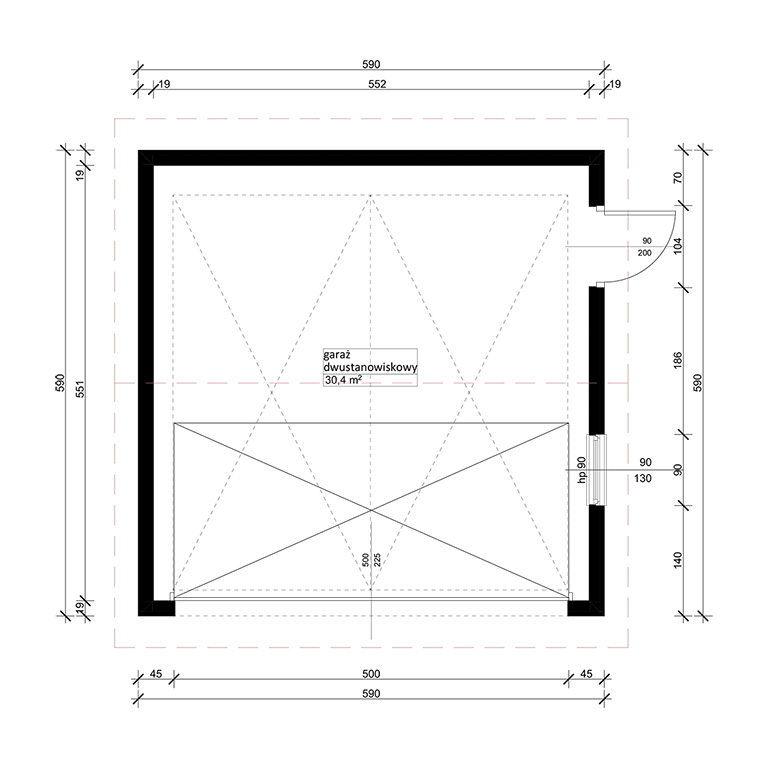 Dwustanowiskowy garaż ERDOL G2 o powierzchni 30,4 m² to doskonała opcja dla osób, które chcą trzymać w bezpiecznym miejscu dwa samochody lub potrzebują miejsca dla jednego auta oraz dodatkowej przestrzeni do przechowywania różnego rodzaju sprzętów.