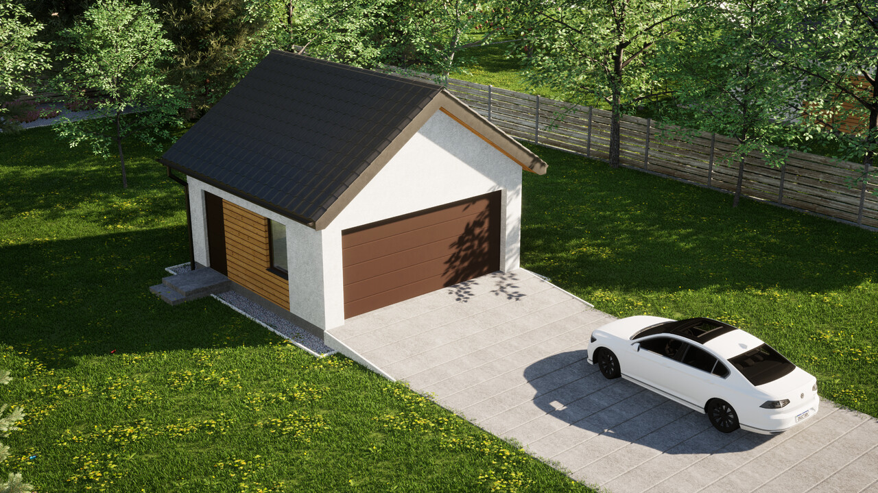 Dwustanowiskowy garaż ERDOL G2 o powierzchni 30,4 m² to doskonała opcja dla osób, które chcą trzymać w bezpiecznym miejscu dwa samochody lub potrzebują miejsca dla jednego auta oraz dodatkowej przestrzeni do przechowywania różnego rodzaju sprzętów.