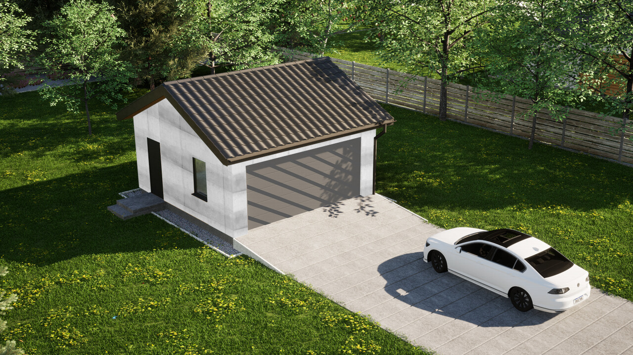 Dwustanowiskowy garaż ERDOL G2 o powierzchni 30,4 m² to doskonała opcja dla osób, które chcą trzymać w bezpiecznym miejscu dwa samochody lub potrzebują miejsca dla jednego auta oraz dodatkowej przestrzeni do przechowywania różnego rodzaju sprzętów.
