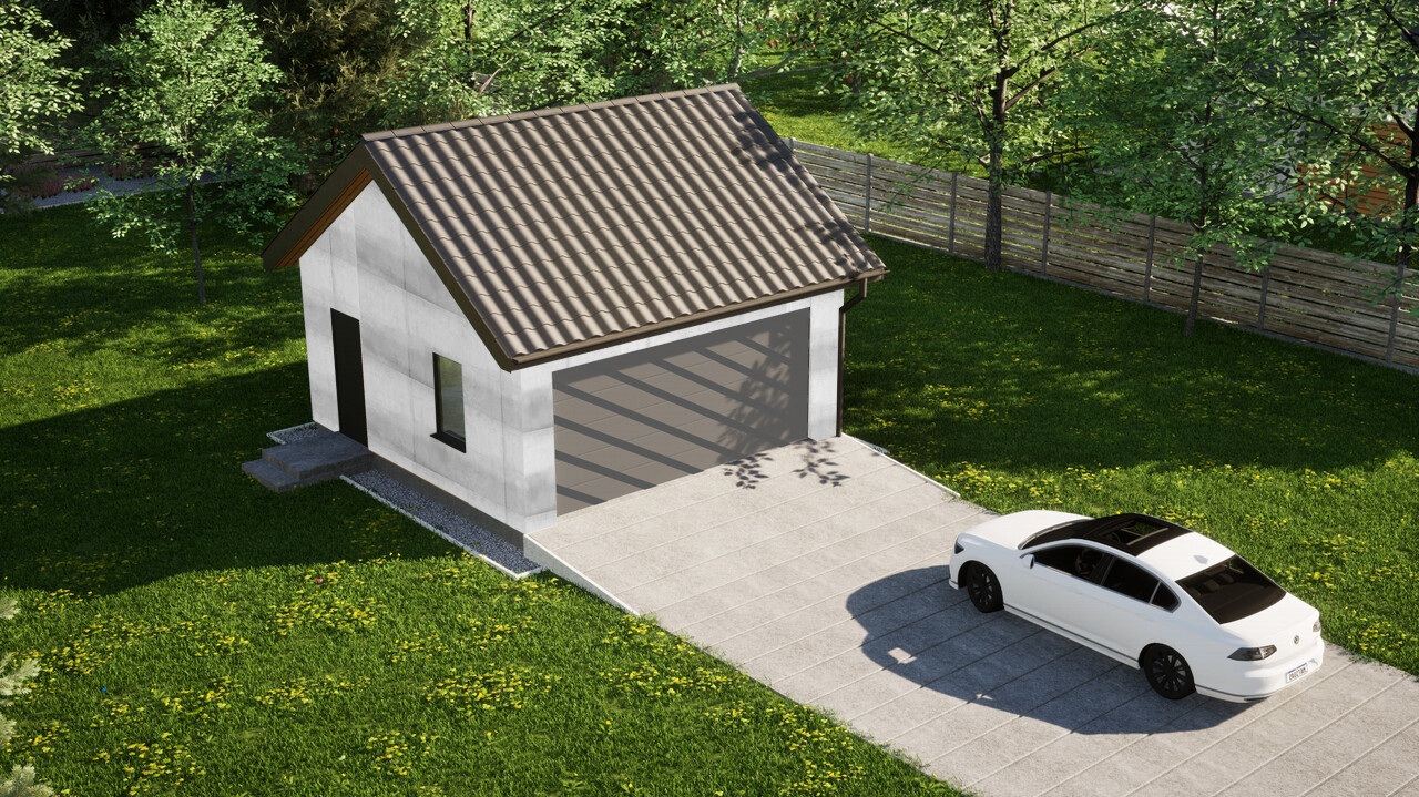 Dwustanowiskowy garaż ERDOL G2 o powierzchni 30,4 m² to doskonała opcja dla osób, które chcą trzymać w bezpiecznym miejscu dwa samochody lub potrzebują miejsca dla jednego auta oraz dodatkowej przestrzeni do przechowywania różnego rodzaju sprzętów.