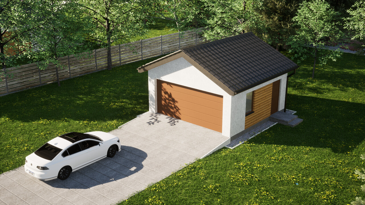 Dwustanowiskowy garaż ERDOL G2 o powierzchni 30,4 m² to doskonała opcja dla osób, które chcą trzymać w bezpiecznym miejscu dwa samochody lub potrzebują miejsca dla jednego auta oraz dodatkowej przestrzeni do przechowywania różnego rodzaju sprzętów.