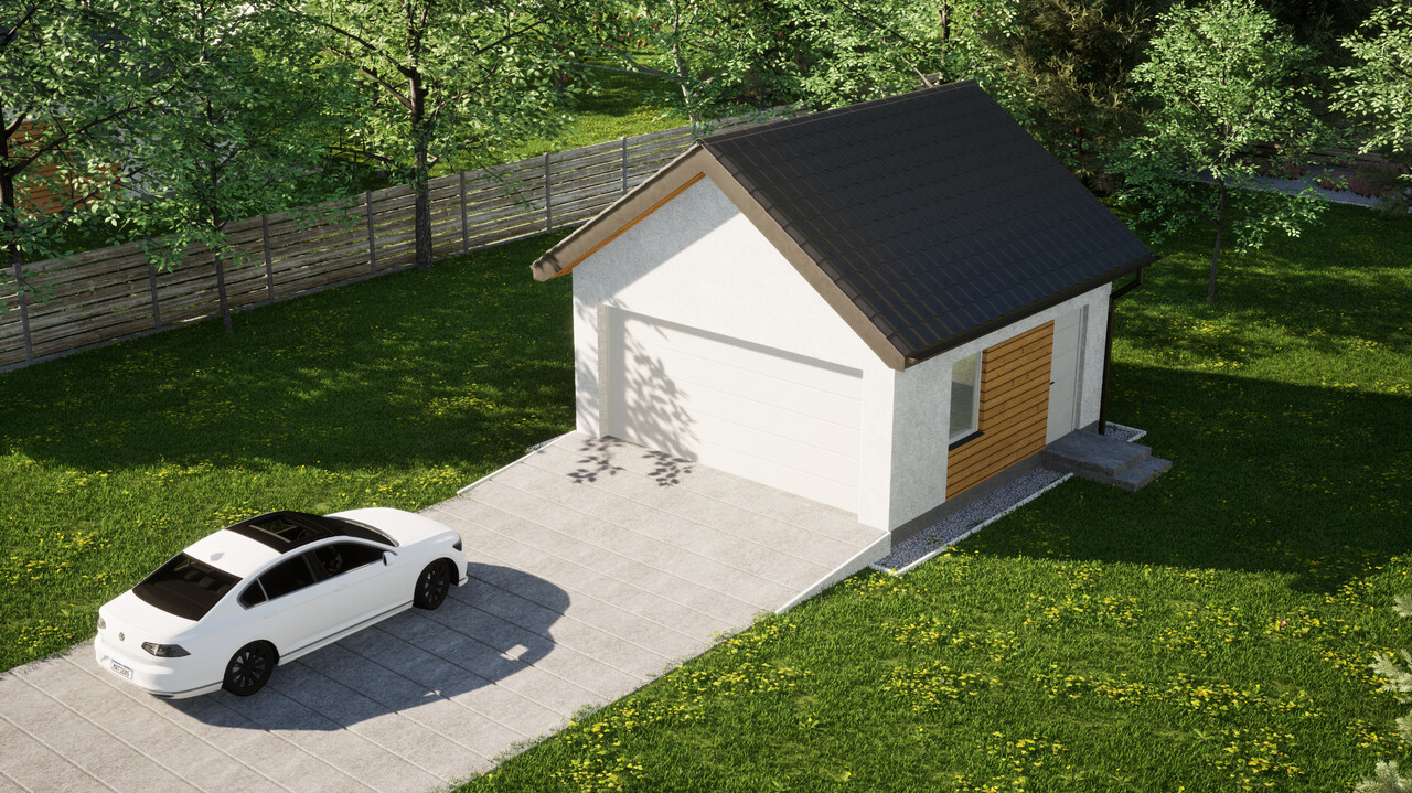 Dwustanowiskowy garaż ERDOL G2 o powierzchni 30,4 m² to doskonała opcja dla osób, które chcą trzymać w bezpiecznym miejscu dwa samochody lub potrzebują miejsca dla jednego auta oraz dodatkowej przestrzeni do przechowywania różnego rodzaju sprzętów.