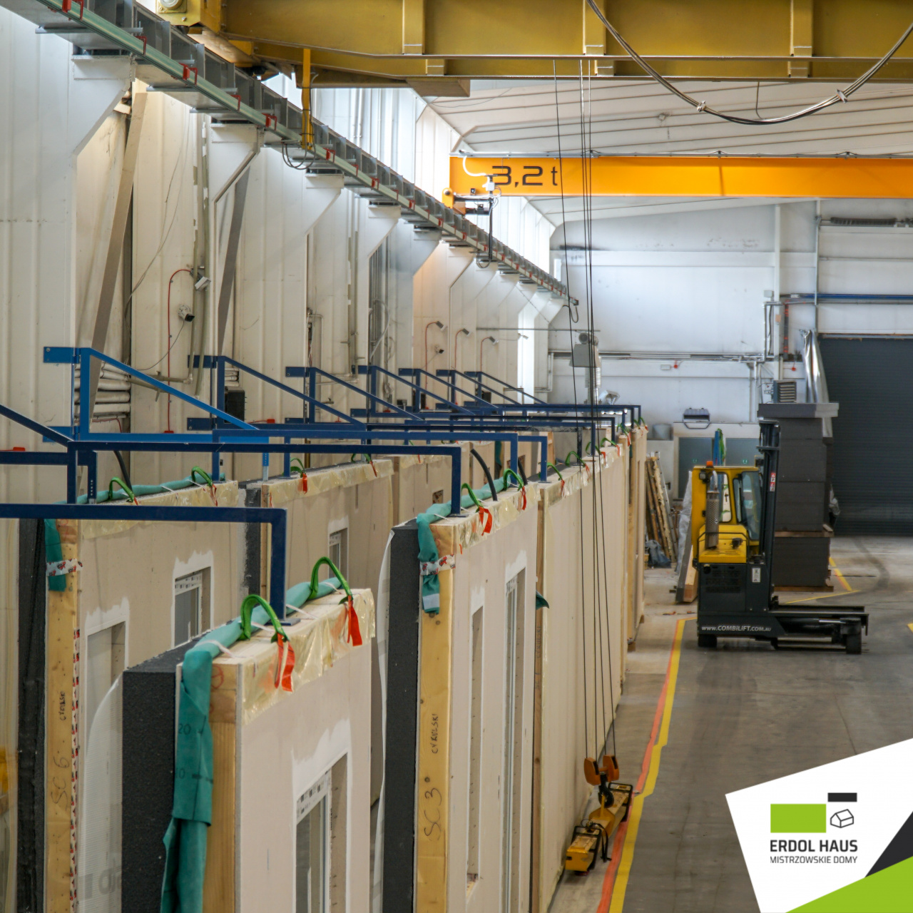 W tradycyjnym budownictwie większość procesów odbywa się na placu budowy – w warunkach zmiennych, mało efektywnych energetycznie i generujących duże ilości odpadów. W ERDOL HAUS budujemy inaczej: kluczowe elementy domów powstają w kontrolowanych warunkach hali produkcyjnej.