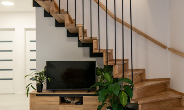 - Obecność schodów wymaga dodatkowej przestrzeni i może stanowić utrudnienie dla osób starszych czy dzieci.