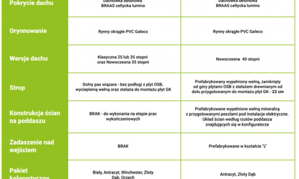 W naszej ofercie znajdują się budynki w dwóch wariantach: ERDOL HAUS STANDARD oraz ERDOL HAUS PLUS. Poniżej przedstawiamy czym różnią się między sobą obie opcje.